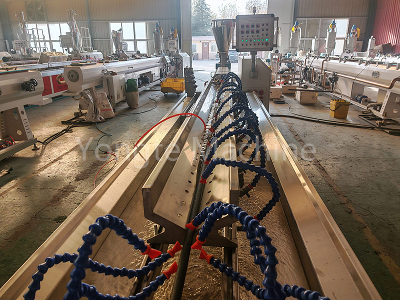 (2) este tanque de refrigeración por agua de 6 metros proporciona un enfriamiento rápido y uniforme para estabilizar la estructura de la tubería y mantener la precisión dimensional después de la extrusión.